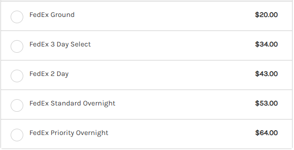 Example Shipping Options